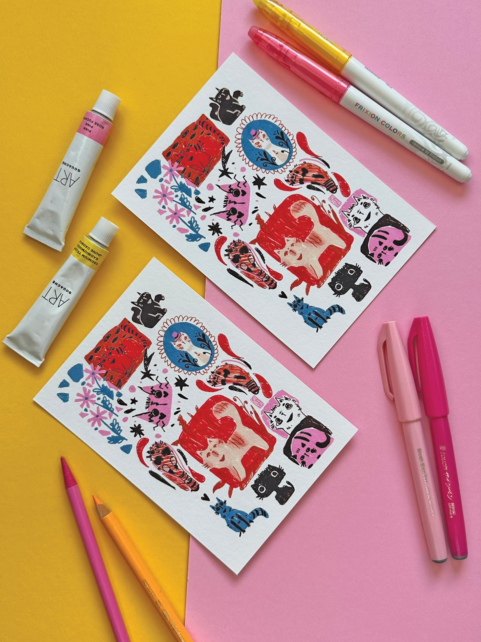 The motif of this art print was traditionally drawn by me using markers and coloured pencils. After drawing the illustration, I scanned it at 300 dpi and edited it to match the original artwork.