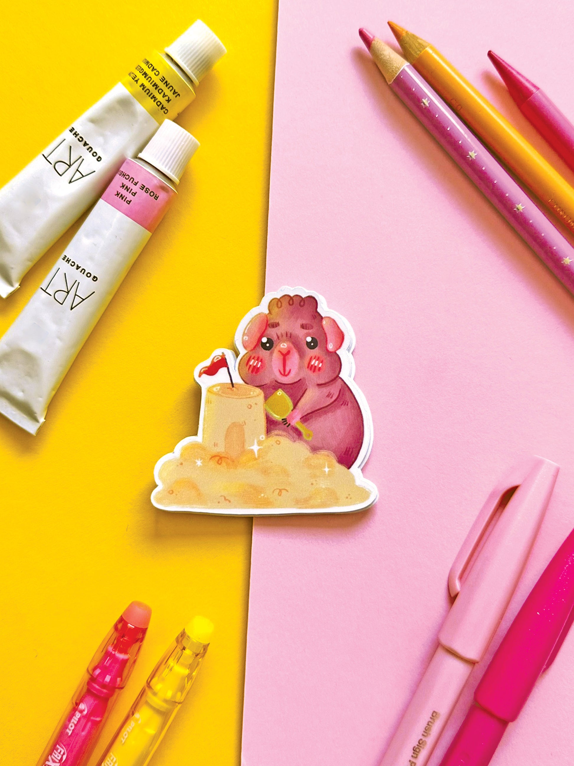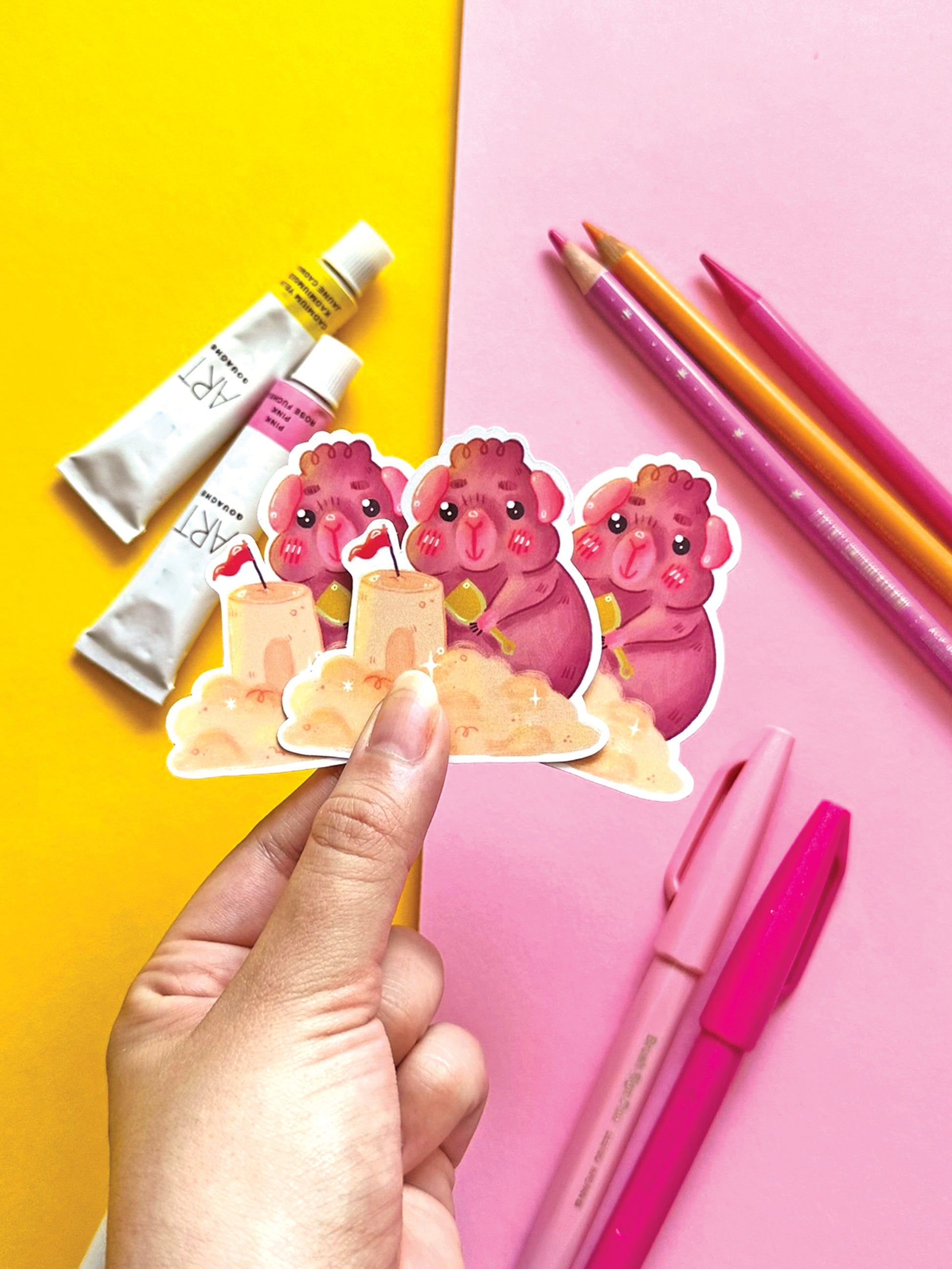 Kawaii Guinea Pig Sticker with Sandcastle, Vinyl Decal for Stationery Decor, Adorable Animal Art