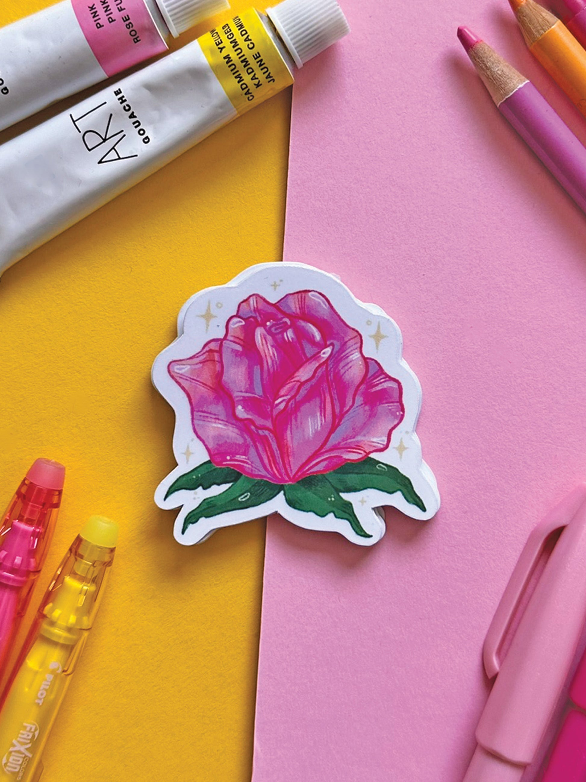 Pink Rose Flower Sticker - Hand Drawn Spring Vinyl Decal for Stationery and Cute Gift Idea
