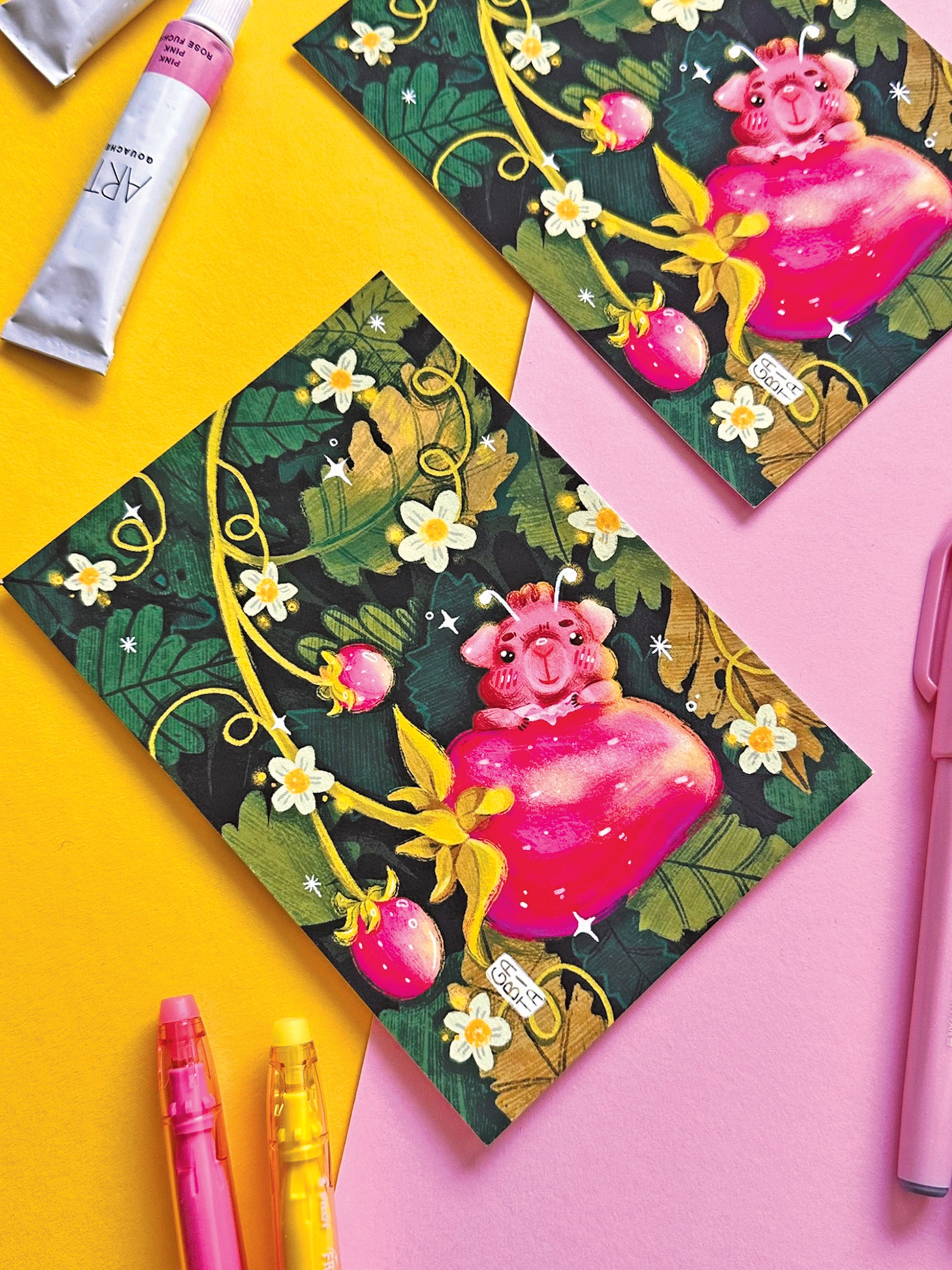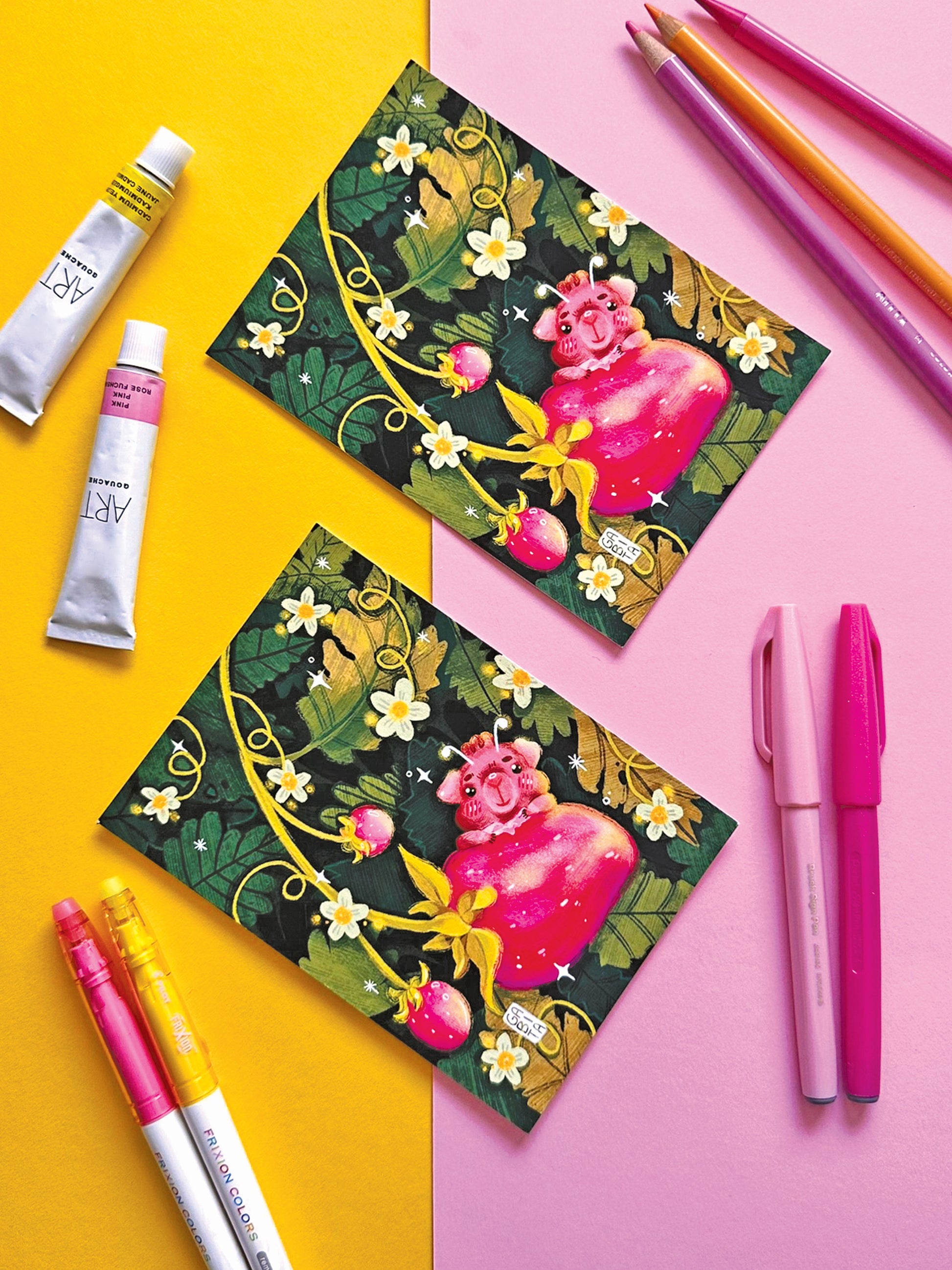 The motif of this art print was traditionally drawn by me using markers and coloured pencils. After drawing the illustration, I scanned it at 300 dpi and edited it to match the original artwork.Β
